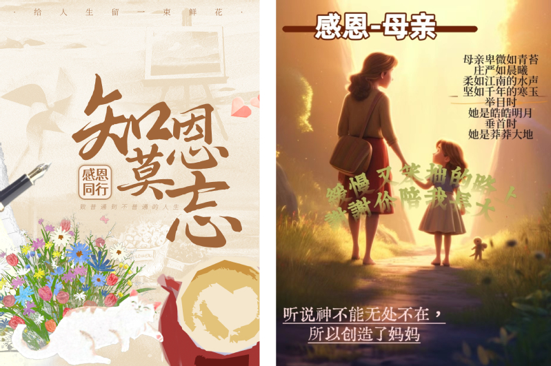 “知恩莫忘,感恩同行”海报设计大赛以线上线下相结合方式进行,公管学子积极报名,提交作品40余份,经学院评选,2020社保专业郭梓玥、2023法学专业张倩两位同学的作品荣获一等奖。本次参赛学生所设计的海报作品有以水墨古风为韵,有以自然风光为主基调,艺术表现形式多样,主题鲜明,内容丰富,在深化学生相关技能的同时,也展现我院学子的熠熠风采。本次活动感恩教育融入主题鲜明的海报设计中,通过优秀作品传递感恩之心,在海报设计中,感恩教育入眼、入脑、入心。