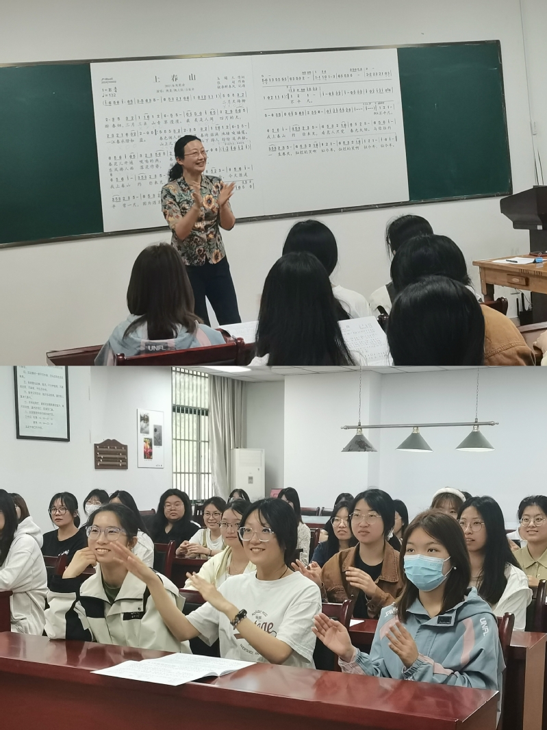 “党建带团建、团建促党建”与美育教育相融合。我上春山约你来见,我攒了一年万千思念”,学校离退休讲师团陈欣老师在离退休活动中心给学院学生党员与团员代表讲授了一堂别开生面的美育课程,陈欣老师通过选取几首中外不同风格的经典曲目,让同学们感受了音乐以其独特的方式影响着人们的心理和情感,依托《上春山》歌曲营造了欢快喜悦的课堂氛围。“互动式”的课程授课方式,让学生们身临其境、耳目一新,沉浸式参与了一场精神盛宴,以美育的聚合效应实现党建工作与团学活动的“同频同振”。