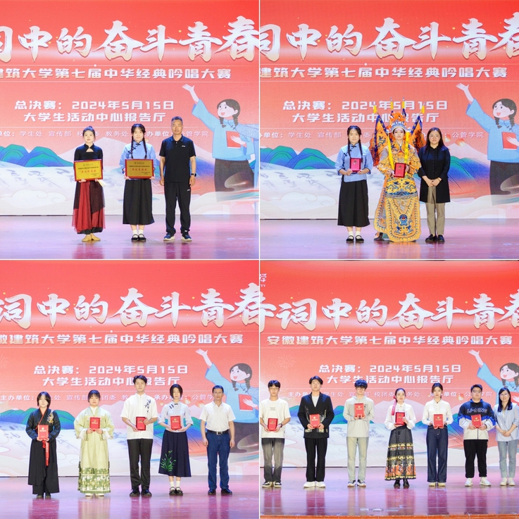 经评委们的认真评审,经管学院《秋风秋雨愁煞人》、公管学院《梨园行》荣获一等奖;环能学院《请党放心 强国有我》、艺术学院《古韵今生 责任之大》、机电学院《满江红》、数理学院《满怀冰雪英雄无觅 百川浩荡剑刻青春荣获二等奖;材化学院《少年中国说》、经管学院寻找红色记忆 赓续瑰丽篇章》、外国语学院《焕然文采照青春 一策奋斗自在身》、电信学院《月光下的中国》、建规学院《不坠吾辈青云志》、土木学院《诗仙李白:一生风华尽墨香》荣获三等奖;外国语学院《焕然文采照青春 一策奋斗自在身》荣获最佳创意奖,经管学院《秋风秋雨愁煞人》荣获最佳表演奖。