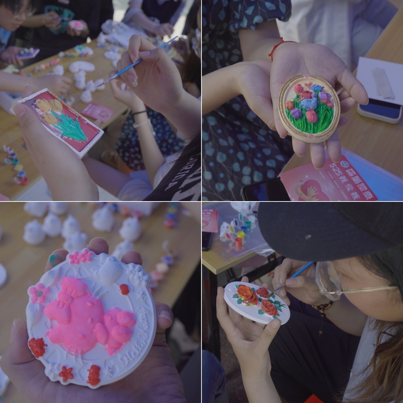 打卡第三站:石膏绘画,享受缤纷人生。通过画笔去描绘美好的事物,活动中,同学们认真地调色、勾线、涂抹,用丰富的想象力和创造力绘染着自己的石膏娃娃,并互相配合,共同涂鸦,将各种各样的色彩涂在石膏娃娃上,素白的石膏经过色彩点缀而变得精妙绝伦,仿佛拥有了鲜活的生命。完成创作后,同学们将手绘作品保存留念,这不仅是艺术创作的过程,更是一次心理疏导的过程。