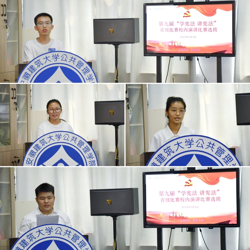 本次“学宪法 讲宪法”系列选拔赛分“法治素养竞赛”和“演讲比赛”两个部分,其中,法治素养竞赛为闭卷测试,包括单选、多选、名词解释、简答等题型。演讲比赛中,选手们围绕“学宪法 讲宪法”主题,紧扣法治主题,结合时政热点,选取身边典型案例,或讲宪法故事,或谈宪法认识,或论宪法精神,用生动的语言和鲜活的例子,将宪法的精神传递给在场的每一位师生,充分表达了自己对宪法的理解和感悟,诠释全民“尊法、学法、守法、用法”的重要性。