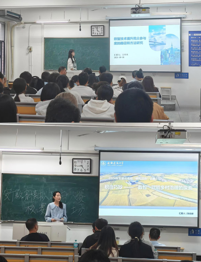本次安徽省“模拟政府”大赛校内选拔赛,充分展现了我校创新创业教育的厚度和专业实践教学的深度,不仅为大学生提供了将数智方法技术与基层公共治理相结合的实践平台,也促进了对政产学研融合发展的积极探索。(文/图:施梦萍、朱永甜;一审:林兴勇;二审:连瑞瑞;三审:黄佳豪)