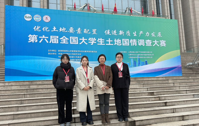 我校由22级土地资源管理专业的代欣悦、韩思奇、成蕊与23级土地资源管理专业的王贝贝、陈诺宁组成的“从容应队”团队,在公共管理学院王玉纯、王秉义老师的悉心指导下完成了参赛作品,经过初赛评审和决赛现场的汇报答辩,团队斩获全国总决赛“二等奖”,刷新了学校在该赛事获奖的最好成绩。