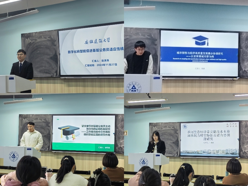 赵涛涛以《数字化转型能促进基层公务员适应性绩效吗?》为题,深入探讨了数字化转型对基层公务员适应性绩效的影响,并阐述了数字化转型与公务员绩效提升之间的直接和间接联系。杨健则《城市韧性与经济高质量发展耦合协调研究——以京津冀城市群为例》题,通过以京津冀城市群为具体案例,深入分析了城市韧性与经济高质量发展的耦合协调性,并提出了促进区域协同发展的政策建议。李传锁以《繁文缛节对基层公务员主动性行为的影响机制研究》为题,深入剖析了繁文缛节对基层公务员主动性行为的影响机制,强调了工作倦怠的中介作用以及组织容错氛围的调节作用,为基层治理提供了新的视角和思路。段雅姝则以《淮河生态经济带安徽段水土资源承载力时空特征及耦合协调度研究》为题,关注了淮河生态经济带安徽段的水土资源承载力问题,通过运用生态足迹法和耦合协调度模型,揭示了该区域水土资源的时空特征,为区域可持续发展提供了科学依据。