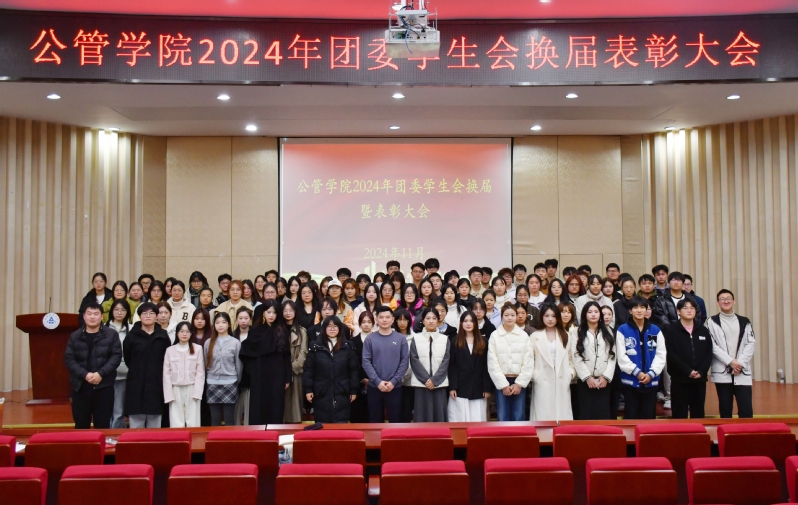 本网讯 征途漫漫从头越,奋楫扬帆向未来。为进一步加强学生会组织建设,充分发挥学生组织桥梁纽带作用,11月28日,公管学院在金寨路校区图书馆二楼报告厅召开2024年团委学生会换届表彰大会,学院团委老师及学生会全体成员参加会议。
