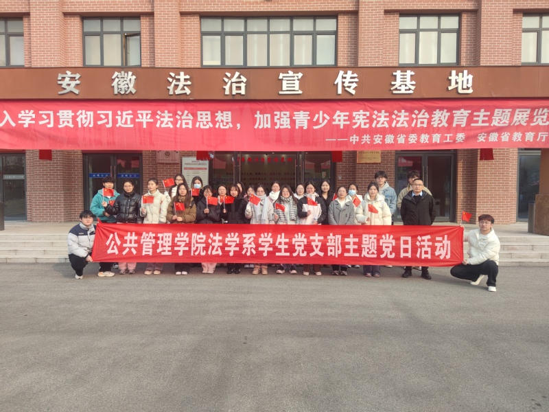 本网讯 为深入学习贯彻党的二十届三中全会精神和习近平法治思想,进一步增强党员的党性修养,强化入党积极分子的教育培养,12月13日下午,学院法学系师生党支部组织师生党员和入党积极分子32人赴安徽省法治宣传教育基地开展主题党日活动。