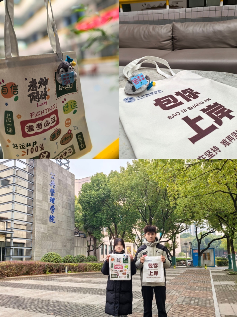 毕业班辅导员们的精心策划下,一份份满载着祝福的“考研祈福伴手礼”传递到了每一位考研学子的手中。“布帆”无恙,印满了温馨祝福语和学院院徽的帆布包,寄托了学院对学子们的美好祝愿和充分肯定。“企”开得胜,企鹅毛绒挂件带着“考神附体”的字样为学子们送来祝福,期待更多考研学子能够从中汲取力量,以更加饱满的热情和坚定的信心迎接考试。