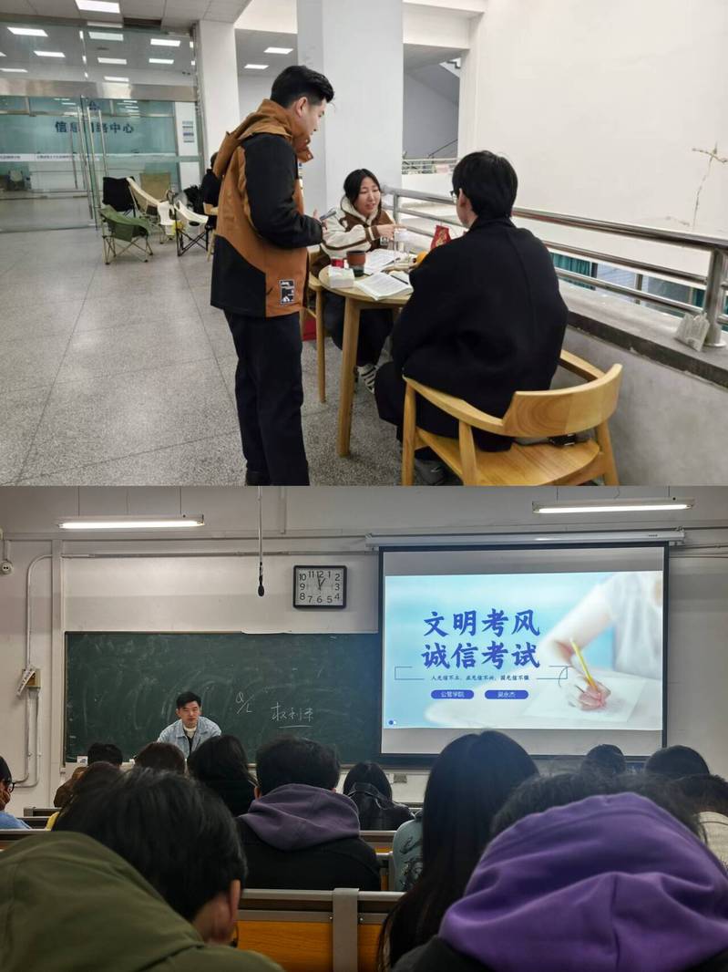 毕业班辅导员召开主题班会、深入学生宿舍,提醒同学们关注饮食,注意御寒保暖,调整备考状态,关注考试注意事项、考场规则、诚信考试,以最佳的身心状态迎接挑战。
