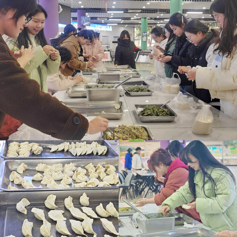 活动现场热闹非凡,同学们精心布置活动现场,一张张桌子整齐排列,饺子皮、馅料等食材一应俱全。大家分工明确,并肩作战,虽然手法各异,但每个人都认真专注,不一会儿,一个个形态各异、饱满可爱的饺子便摆满了餐盘。同学们边聊天边欣赏,相互惊叹各自包饺子的方式,场面温馨而祥和,充满着“家”的味道和温暖。