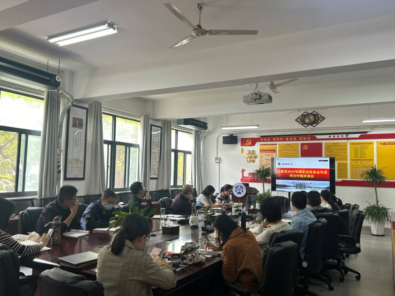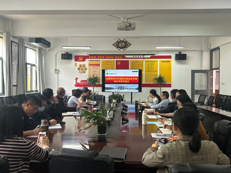 本网讯 4月16日下午,公共管理学院在建树楼F209会议室集中观看了“安徽省2025年国家社科基金年度项目申报培训会”,安徽师范大学徐彬教授、戴中朝教授进行线上指导,申报国家社会科学基金和教育部基金的老师参会。