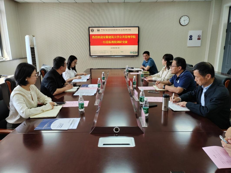 本网讯 2025年5月12日,为进一步加强学科建设与党建交流,公管学院副院长王秉义、土管系副主任王玉纯、青年教师张童一行赴中国矿业大学公共管理学院开展专题调研。中国矿业大学公共管理学院副院长闫庆武、全国党建工作样板支部土地资源管理系党支部书记王培俊、系主任公云龙及3位教授代表参加交流。