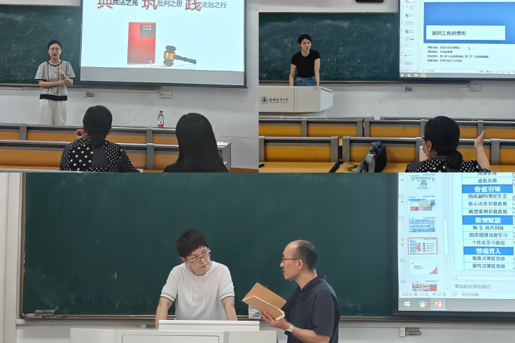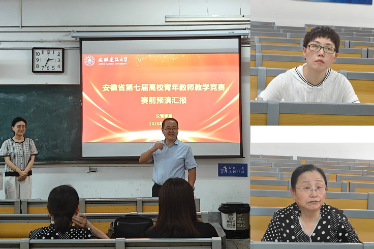 对标赛事具体要求,全国高校教创赛参赛选手胡安琪、马志及安徽省青教赛参赛选手王芃分别就教学设计、课堂展示等内容进行预演汇报。两位专家从价值引领与知识传授的融合度、思政元素的挖掘深度及时代性等维度进行细致点评,在教学逻辑架构、教学方法创新、课堂互动设计等方面提出改进建议,提出要重视教学目标达成度、教学环节完整性等重点内容。