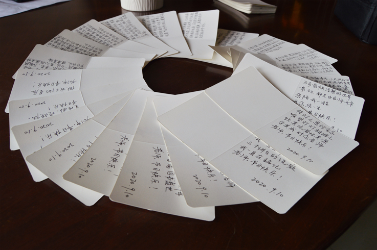 文竹容易抽出新枝,寓意老师的学生满天下。多肉比一般的鲜花多了一份情趣,祝愿老师的生活美满。学生们写下一张张充满情感的卡片,字里行间透露着对老师的感激之情及美好祝愿,为老师送上最温暖的祝福。