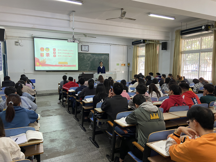副院长彭志胜向同学们解读了2020年全国两会精神,重点介绍了两会的亮点与重点。他通过生动的案例,展示了党带领全国人民抗击新冠疫情所取得的阶段性成果,引发了同学们对社会主义制度优越性的深刻思考和强烈认同。