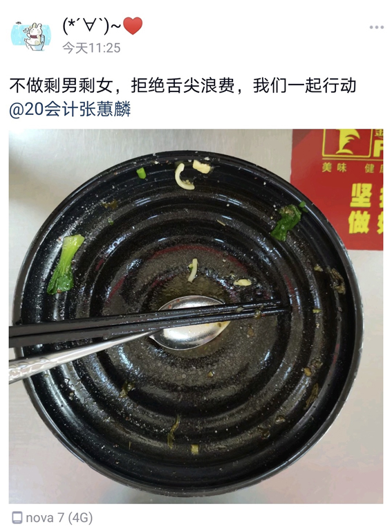 本网讯  为大力弘扬中华民族优良传统,增强学生勤俭节约意识,经管学院于近日开展“光盘行动”打卡接力活动,取得良好效果。