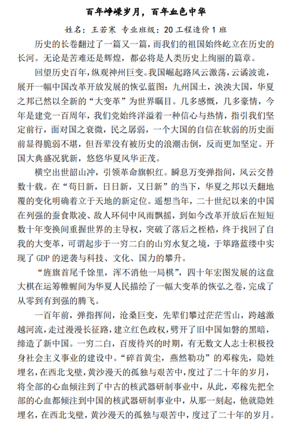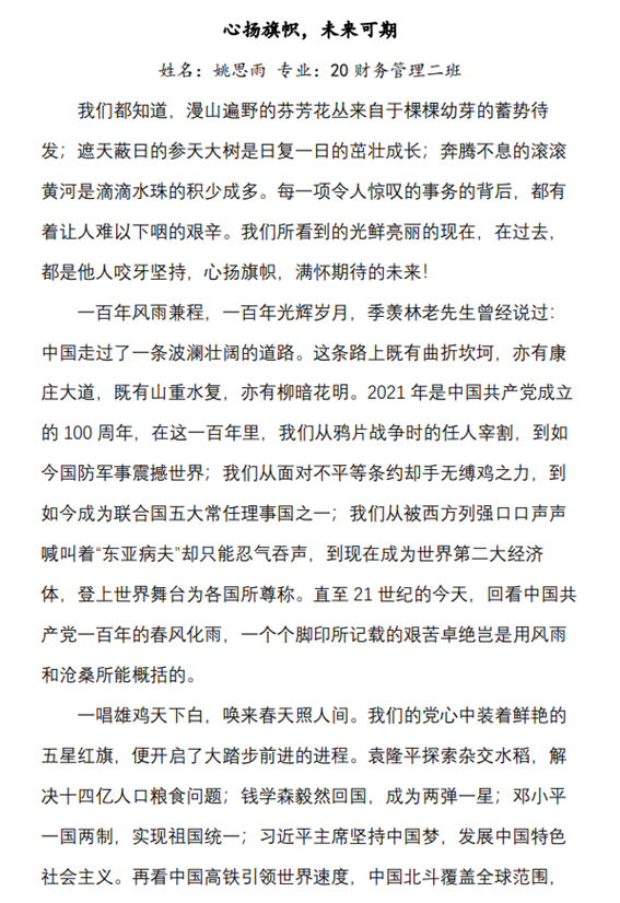 【庆祝建党100周年】经管学院举办“礼赞建党百年 我用青春书华章”征文比赛