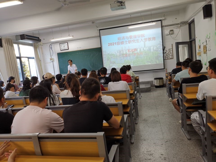 本网讯 9月22日,经济与管理学院在北区F楼316开展经管学院2021级硕士研究生入学教育。会议由副院长彭志胜主持,经管学院全体2021级硕士研究生参加。