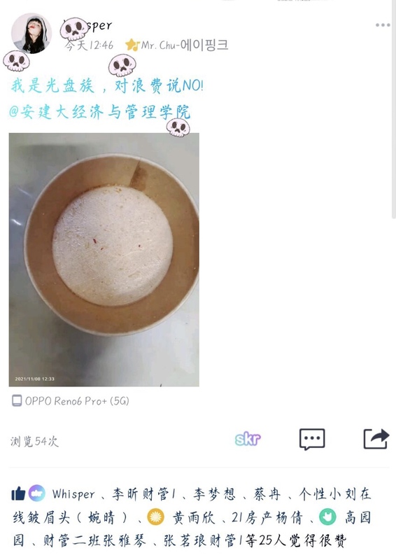 通过此次活动,学生们增强了节约意识,认识到珍惜粮食的可贵,不仅传递了社会正能量,也进一步弘扬了中华传统美德,激励同学们能够积极践行光盘行动,加入光盘族,一起对浪费说“NO”。(作者:刘晓丹 汪凌风 杨磊;审稿:帅英)