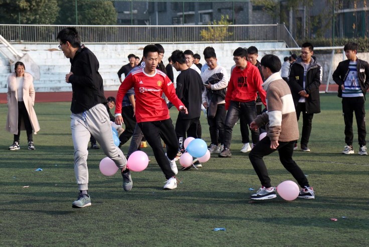 本网讯 12月9日,经管学院2021级工程管理专业在北区足球场举行趣味运动会。辅导员宁宁老师与专业87名同学参与本次趣味运动会。