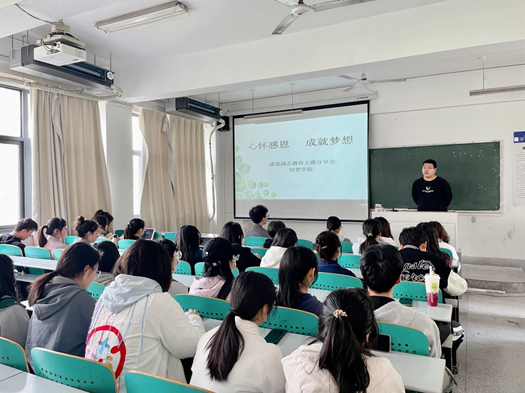 本网讯 近期,经管学院举行“温‘心’驿站,阳光成长”朋辈经验分享系列沙龙,本次交流会结合学校近期疫情防控常态化的要求,以“点对点”走进班级的形式开展,有助于近距离地接触不同专业、不同年级的学生,邀请大家共同分享自己的学习成长经历与感悟体会。