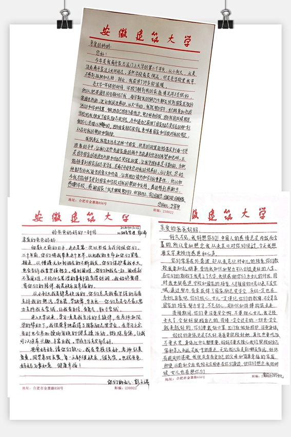 一支笔,一张纸,一封信。“家书”这种作为亲人间沟通的书信形式,在这个通讯发达的时代似乎距离我们已经很远了,但这笔墨生香所带来的安慰并不能轻易被取代。开展“一封家书”主题活动,让学生在知恩中感受爱,在感恩中表达爱、在报恩中传递爱,引导同学们在弘扬中华民族传统美德中树立正确的人生观、世界观和价值观,同学们纷纷提笔,用书信的形式与父母沟通,很多同学也是第一次如此坦率地表达对父母的思念和感激。通过与父母畅谈大学生活和人生目标,同学们意识到了父母的殷切希望和自己肩上的责任。