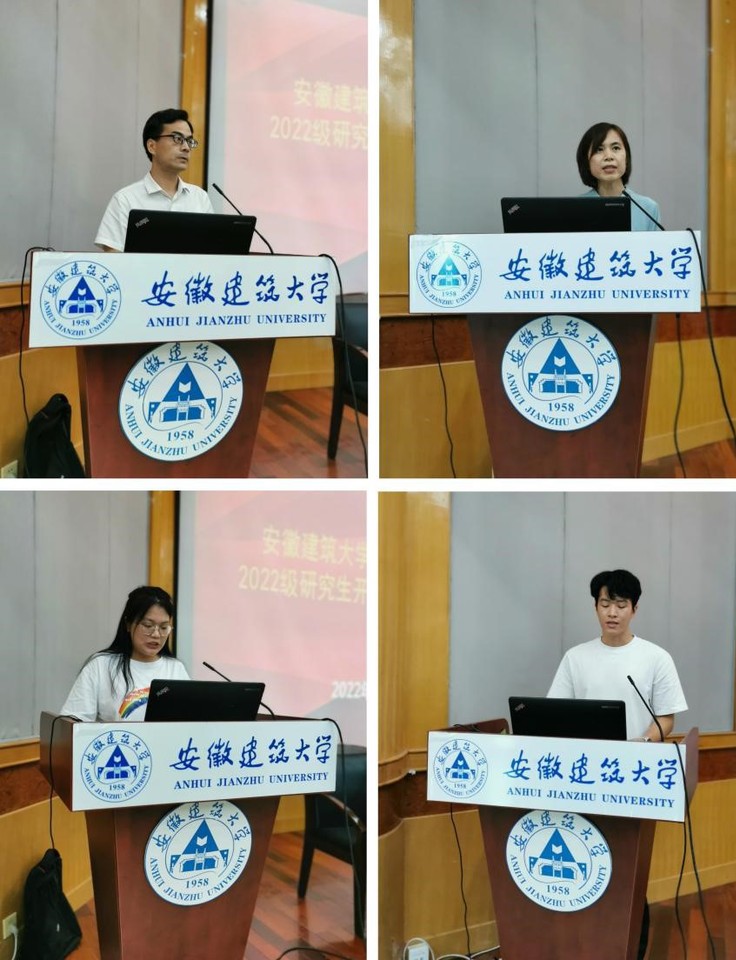 学院导师代表结合研究生培养经历,给予同学们在研期间的学习建议与指导,希望同学们明确目标、转变思维、脚踏实地、勇担重任,做新时代全面发展的研究生;2020级工程管理专业研究生施会玲作为老生代表发言,她以“珍惜、规划、激情”为关键词,分享了研究生学习生活的点点滴滴,愿师弟师妹刻苦钻研,勇攀科研高峰;2022级土木水利专业研究生罗文斌作为新生代表发言,首先他对母校领导老师本科阶段的培养表示感谢,站在新的起点希望和全体新生能够转变学习思维,提升专业水平,在建大美丽的校园收获真知与人生的意义。