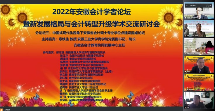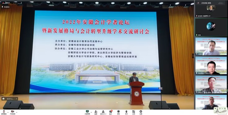 本网讯 2022年11月5日,由安徽省会计教育协同发展中心举办、安徽科技学院财经学院承办的“2022年安徽会计学者论坛暨新发展格局与会计转型升级学术交流研讨会”以线上线下相结合的形式举办。经管学院院长彭志胜以及财会系部分教师受邀参加。