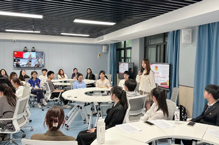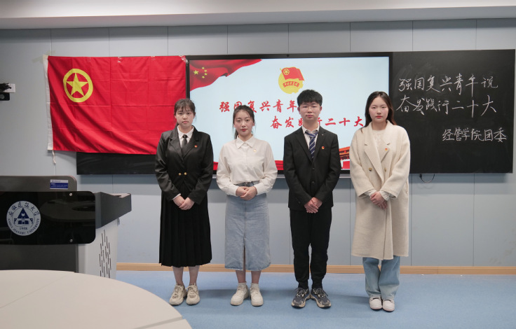 “菁琯青年宣讲团”的四位学生成员高静怡,邹炘彤,王振,李莹莹依次就新时代新征程中国共产党的使命任务;开辟马克思主义中国化时代化新境界;推动绿色发展,促进人与自然和谐共生;教育科技人才是全面建设社会主义现代化国家基础性战略性支撑这四个方面带领同学们深入认识党的二十大精神。主讲人用青年视角、青年语言,结合自身专业学习、生活日常等方面,从个人—学校—国家这三个层面分享自身对党的二十大报告相关内容的理解和认识。活动现场,同学们踊跃发言,积极讨论,于言行中弘扬践行党的二十大精神,发出当代青年的奋进心声。