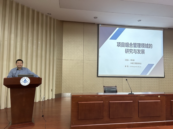 上午为专家讲坛部分。长安大学白礼彪教授以“项目组合管理领域的研究与发展”为主题进行报告,从项目组合的内涵出发,系统梳理了项目组合的协同效益机制,并就项目组合的未来发展趋势进行了展望。此外,白教授还针对目前研究生普遍存在的问题提出了建议,为学生“如何做好科学研究”指明了方向。安徽大学徐小平教授以“碳交易机制下制造型企业平台化运作策略研究”为主题进行报告,围绕碳交易系统介绍了平台经济最新的研究进展。徐教授接着以其在国际权威杂志上发表的文章为例,从引言、文献综述、问题研究、结论和展望等方面详细介绍了如何写一篇高质量论文。同学们与主讲嘉宾就相关问题进行了深入探讨和热烈交流,现场气氛十分活跃。