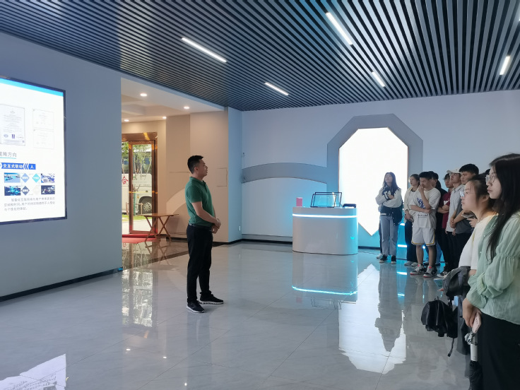 5月26日上午,师生一行走进阜阳合肥现代产业园区,相继参观了安徽阳飞光电科技有限责任公司、阜阳欣奕华材料科技有限公司等先进制造业企业,了解企业如何通过创新驱动破解行业“卡脖子”问题。