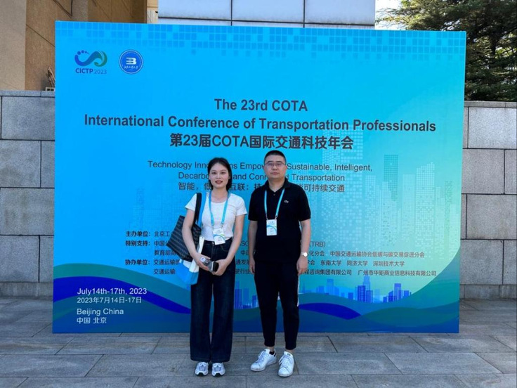 本网讯 2023年7月14日至17日,第23届COTA国际交通科技年会(CICTP 2023)在北京举行,本届会议由北京工业大学主办,中国公路学会、美国土木工程协会(ASCE)、美国交通运输研究会(TRB)等机构特别支持,会议主题为“智能,低碳,互联:技术创新赋能可持续交通”。经管学院科研办(研究生办)副主任康玮博士率其指导的研究生王群参加了此次会议。