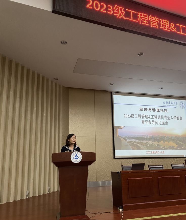 本网讯 2023年9月28日,工程管理系在北区图书馆报告厅举办2023级工程管理&工程造价专业新生入学教育暨学业导师见面会。学院副院长章蓓蓓出席并致辞,工程系全体教师以及2023级工程管理和工程造价全体同学参加了此次活动。