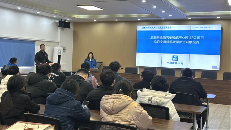之后技术负责人向同学们详细介绍了现场施工流程等管理过程,并以肥西系能源汽车智能产业园EPC项目为案例分享了具体建筑工程项目的设计和管理经验。