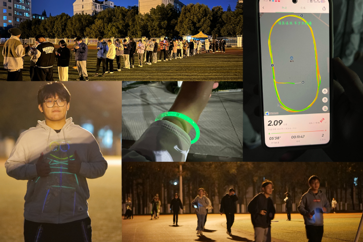 活动伊始,工作人员分发荧光装饰物,随即参与者佩戴荧光物在校园内自由跑动,在操场、图书馆、食堂等七处打卡点任选四处打卡。夜幕降临,同学们身上的各色荧光分散在校园的各处角落,点亮整个校园,在夜幕下奔跑的身影成为校园里一道亮丽的风景线。“荧光夜跑不仅是一种运动,更是智慧与美的结合,运动的同时享受乐趣,释放压力、愉悦身心。”参与的同学愉悦的分享到。