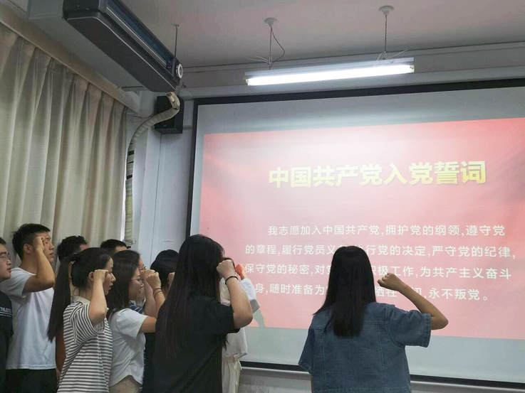 活动伊始,在支部党员谢双燕的领誓下,所有党员面对党旗再次庄严宣誓,重温入党誓词,回忆入党时的铮铮誓言和奋斗决心,让入党誓词成为未来之路的指路明灯,让入党初心伴随每名党员成长,让党员身份在青春梦融入中国梦中熠熠生辉。
