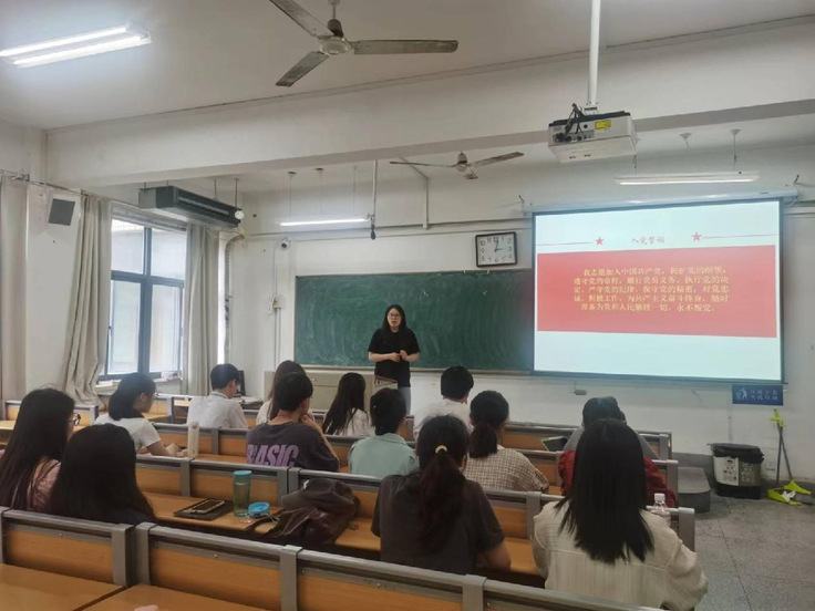 学生第三党支部书记胡萍围绕党纪学习教育为学生上党课,在结合违纪典型案例的基础上,有针对性的讲解《中国共产党纪律处分条例》中的具体条文,帮助大家加深对条文的理解,引导学生党员进一步强化纪律意识、加强自我约束、提高免疫力。