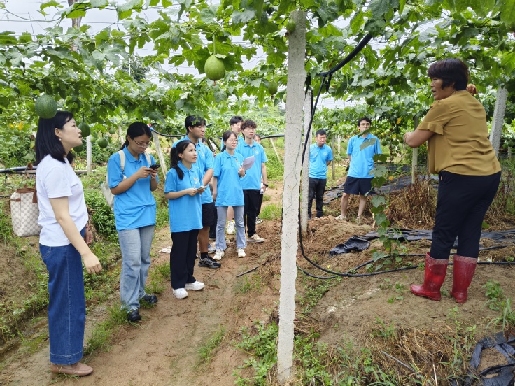 为了解当地特色产业发展现状,实践团对当地多个特色产业基地进行实地考察。在汤池村和三江村,同学们深入蔬菜大棚养殖基地、瓜蒌基地、葡萄种植基地等,基地采用的全面滴灌技术和机械自动化生产模式,有效提高了农作物产量和质量。近年来在政府的精准扶持和当地村民的积极努力下,基地建设和产业发展取得了显著成效,基地负责人的详细介绍让同学们深刻认识了现代农业技术的重要性。调研中,实践团还探索了团队成员参与当地优质品牌打造、农产品销路拓宽、网络营销传播等方面的可能性,期待为汤池村的特色产业发展贡献建大学子力量。
