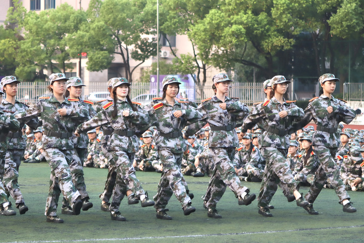 绿茵场上的军训队伍如同一幅幅流动的画卷,在阳光下闪耀着青春的光芒。稍息、立正、齐步走,队列整齐划一,每一步都踏出了青春的韵律。口号声此起彼伏,响彻云霄,充满了力量和决心,如青春的号角般,催人奋进。秋风轻拂,带来丝丝凉意,却无法吹散训练场上弥漫的火热气息。