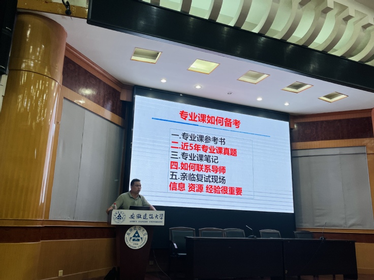 本网讯 为帮助2022级学生更好的了解考研形势,明确考研目标,掌握备考方法,提前做好学业规划,9月23日,经管学院邀请安徽新文道考研在建树楼三楼报告厅举办考研与学业规划指导专题讲座,来自经管学院和公管学院相关专业约100余名有考研意向的学生参加了讲座。