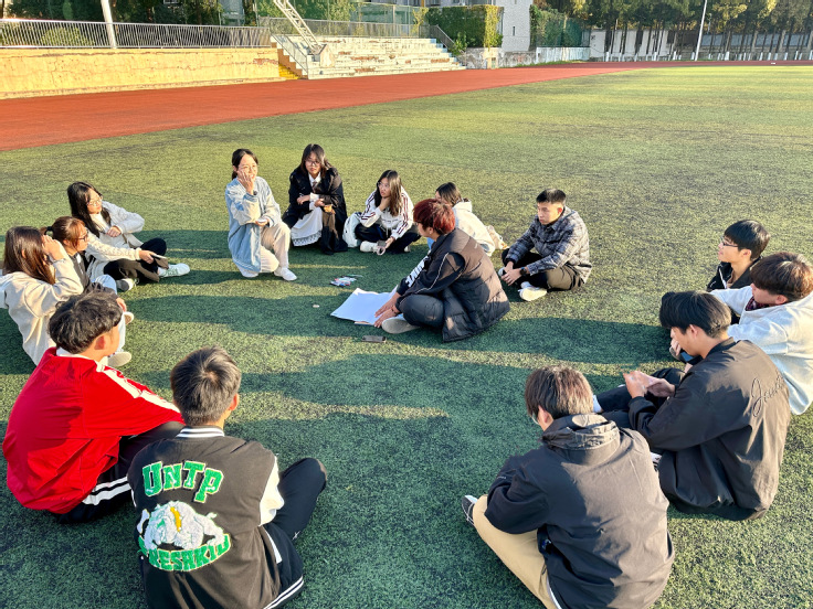 活动当天,田径场上欢声笑语,热闹非凡。在分组环节,大家按照“123456”依次循环报数,相同数字的同学结为一组。六支队伍在田径场上蓄势待发,准备展开一场激烈又有趣的素拓比拼。