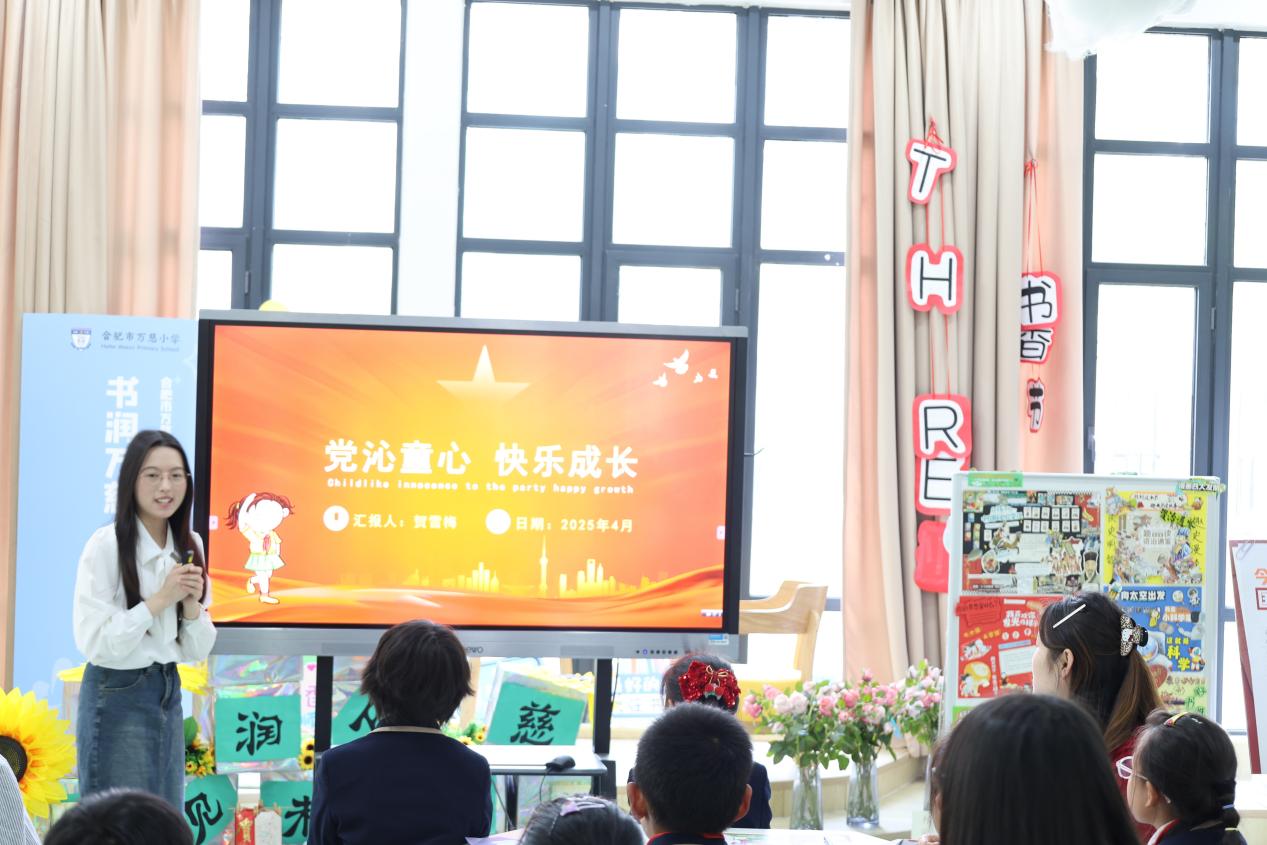 奋斗精神共传承,趣味互动启新思。研究生党员贺雪梅以《党沁童心,快乐成长》为主题,向同学们讲解了少先队员、共青团员与共产党员之间的紧密联系,绘声绘色地讲述着刘胡兰、王二小等英雄人物的事迹,孩子们围坐在一起,听得聚精会神,眼中闪烁着求知与敬佩的光芒。在随后的知识问答互动中,孩子们争先恐后、积极踊跃地举手,表达出自己对党和国家的绵绵情谊。