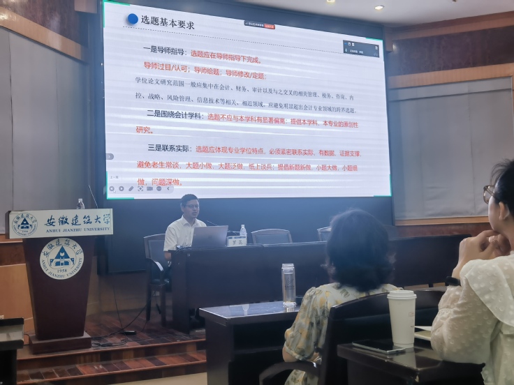 此次讲座主题鲜明、内容充实、讲解生动,专家观点具有很强的指导性、针对性和可操作性。这一方面为经管学院教师提供了MPAcc学位论文指导的宝贵经验和启发,同时也为会计专硕研究生如何撰写高质量的学位论文指明了方向,对进一步提升学院MPAcc学位论文水平、提高MPAcc培养质量具有重要意义。(文/图:王晶;一审:孙文 二审:章蓓蓓 三审:彭志胜)