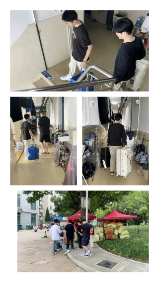 6月18日-19日,支部特别组建了“党员爱心搬运队”,在宿舍楼前设立“党员先锋岗”,提供行李搬运、手续咨询等服务。活动中,党员们顶着30℃的高温,肩扛手提往返于宿舍与快递点之间。有的党员主动借来小推车提高效率,有的党员自费购买打包材料。据统计,累计协助40余名毕业生完成行李托运。