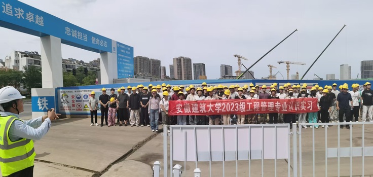 本网讯 近日,经济与管理学院工程管理系组织开展认识实习校外实践活动,汪之龙老师带领工程系相关教师与2023级工程管理专业和工程造价专业170名学生前往合肥市经开区JK202402号与JK202403号地块项目参观。