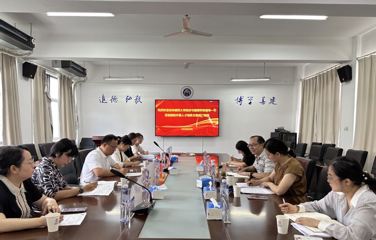 本网讯 8月3日,吉林建筑大学经济与管理学院院长王禹杰、副院长任玉霜率相关专业负责人一行来我院开展人才培养方案修订调研。学院党委书记潘和平、副院长章蓓蓓及工程管理系主任杨苏、财会系副主任徐奕红参加调研座谈会。会议由潘和平主持。