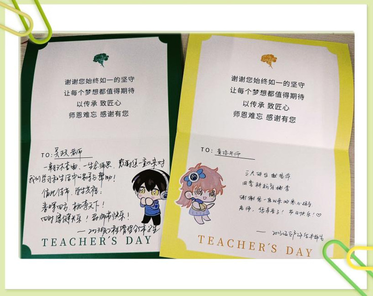 本网讯 春风化雨润桃李,润物无声育栋梁。在金风送爽、硕果盈枝的九月,我们迎来了第41个教师节。为响应“以教育家精神铸魂强师,谱写教育强国建设华章” 主题,经管学院分工会开展了“笔墨传情,致敬师恩”活动,学生以亲手撰写的贺卡向老师们表达最诚挚的敬意与祝福。