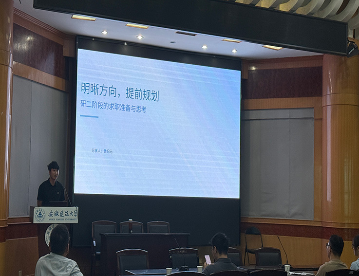 黄纪元现入职科大硅谷服务平台公司,他围绕如何关注安徽科创政策进行交流分享。他在研究生期间主动积累科创服务相关知识,“如今在平台参与产业孵化工作,能把专业所学与‘打造世界影响力创新之谷’的目标结合,这种‘价值感’让工作更有意义”。他的选择为新生提供了“将个人职业规划融入区域发展大局”的新思路。
