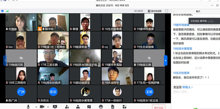 本网讯 为提高教学质量,深入推进学院教育教学工作,5月18日下午,环能学院通过腾讯会议召开本科教学期中检查学生座谈会。环能学院副院长解华明,系主任代表陈广洲,学院教学督导组成员章瑾及学院各年级专业学生代表参加座谈会。