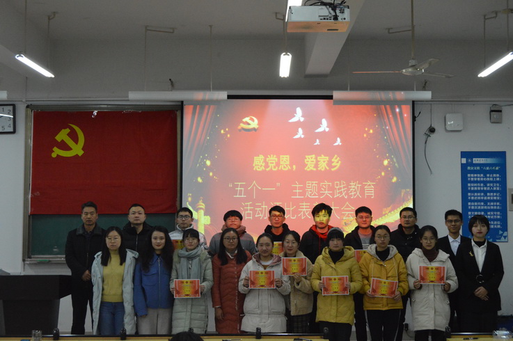 在评选表彰大会上,各支部党员代表通过视频、PPT、演讲等形式,述说家乡革命史,喜看家乡新变化,充分展现对家乡的热爱,对党的深情。最终,评选出一等奖1名,二等奖2名,三等奖3名,优秀奖6名,第三学生党支部和第四学生党支部获得优秀组织奖。主题实践活动历时将近半年,活动使广大学生党员拓宽了视野,扩大了知识面,增长了见识,提高了实践能力,增强了责任担当意识,为在将来的工作学习中切实发挥模范带头作用打下了扎实的基础。(文、图:丁媛媛;审稿:胡志龙)