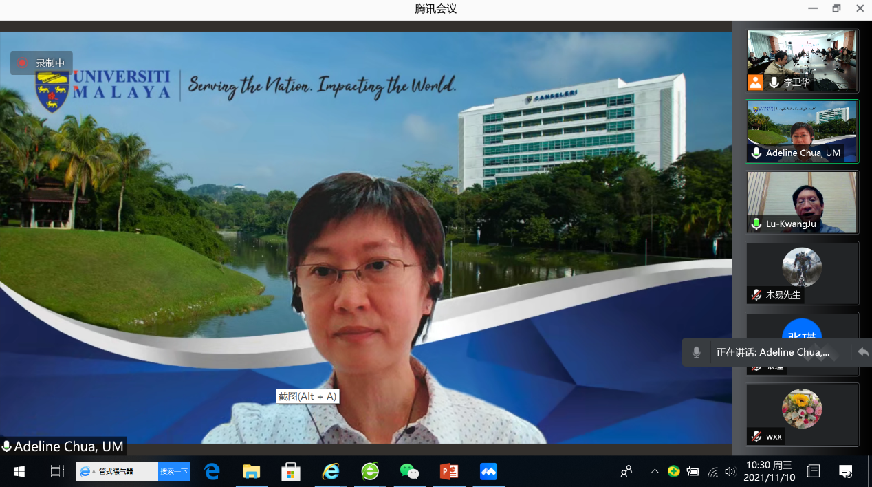 马来亚大学Adeline Seak May Chua教授作为会议主席,在大会开幕式致辞。美国阿克伦大学Lu-KwangJu教授、马来亚大学Adeline Seak May Chua教授等8人作特邀专题报告,我校李卫华教授、荣鼐博士分别在会上作了题为“Carbon-neutral wastewater treatment plant of  village”和“CO2 capture based on Calcium Looping”的学术报告。